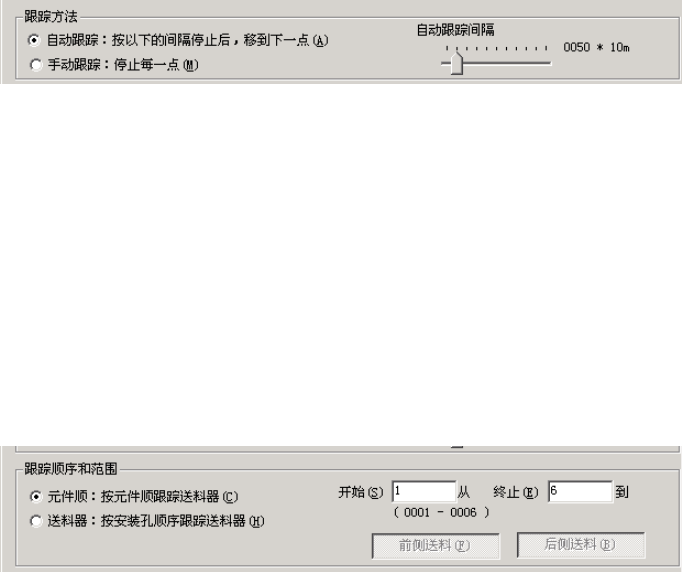 显示跟踪范围,元件的起始、结束号码,使用哪一个送料器台架。