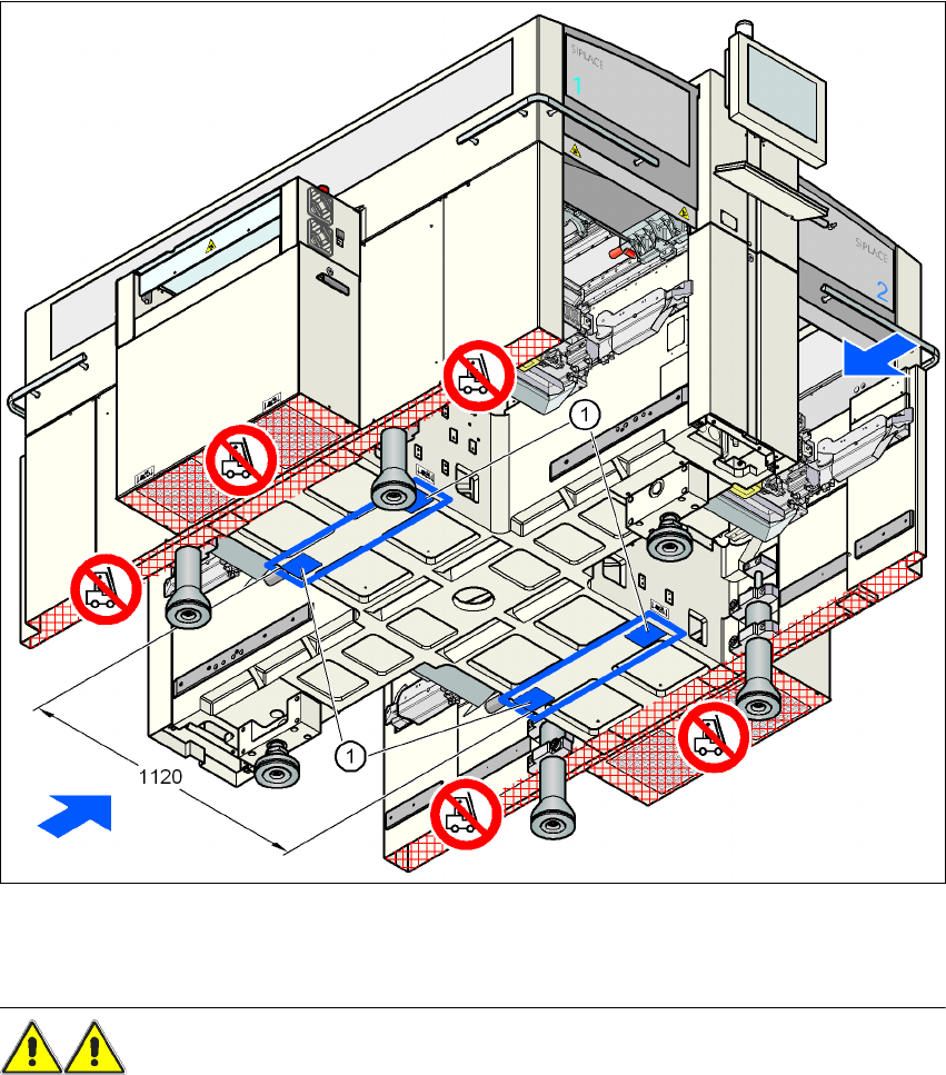 사용자 매뉴얼 SIPLACE X-S eries 4 셋업 및 작동 소프트웨어 버전 SR.605.xx 2008 년 7 월 한글판 4.2 설치 위치의 인프라 245 장비 다리 고정부가 변형될 수 있습 니다 . 장비를 들어올릴 때에는 다른 사람이 지켜보도록 하여 지게차로 장비를 들어올릴 때 한 쪽 으로 뒤집히지 않도록 하는 것이 좋습니다 . 4.1 .5.4 장비 운반 시 유의해야 할 사항 경고 장비…