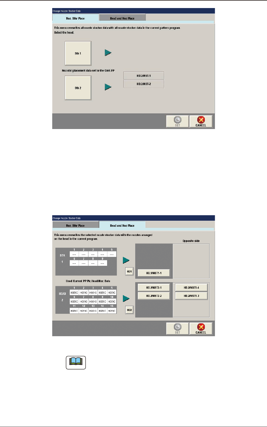 When the [Head and Noz Place] tab is pressed, the tab sheet is changed to