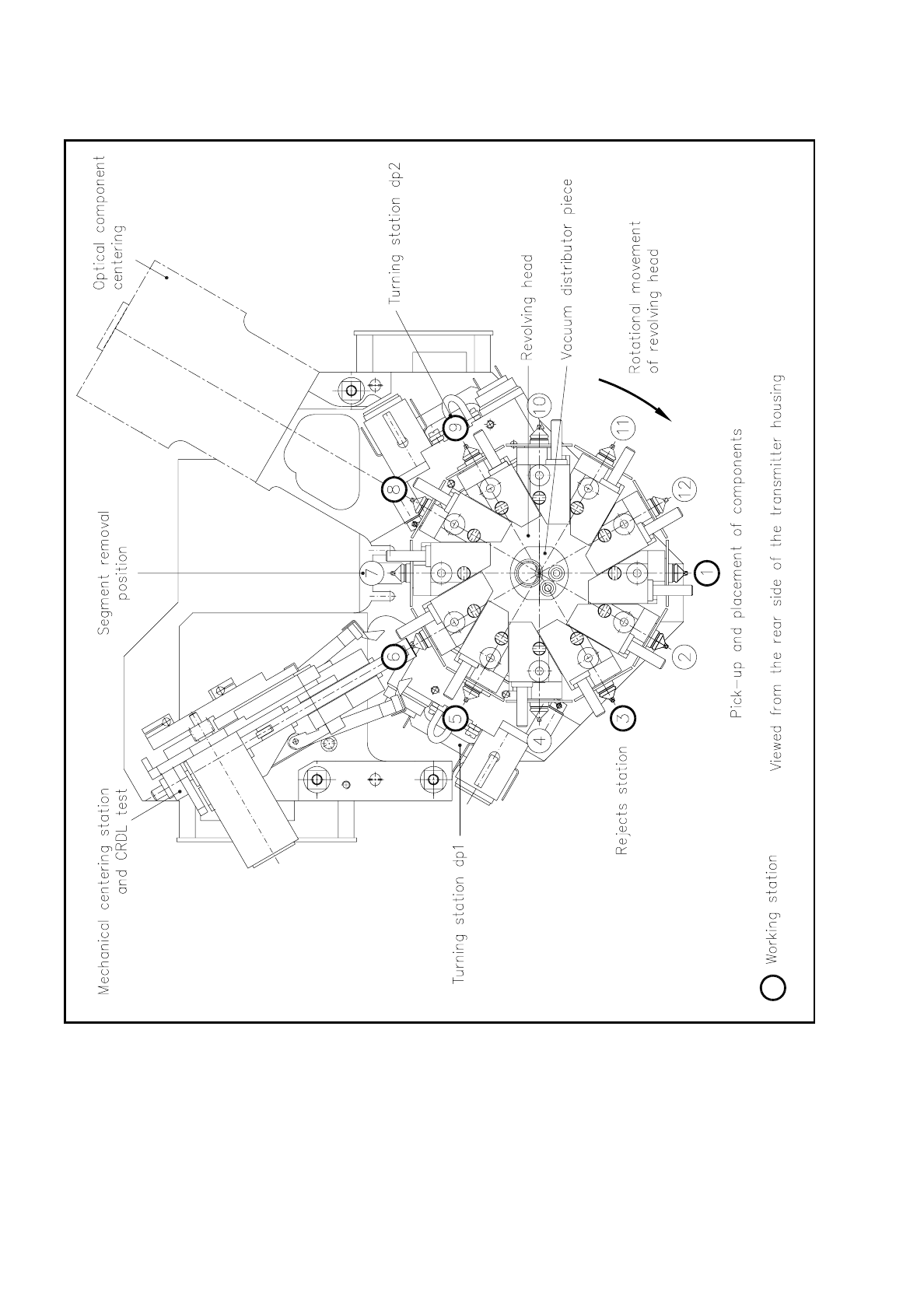 of the revolver head. At each work station the actions required for mounting the components will be