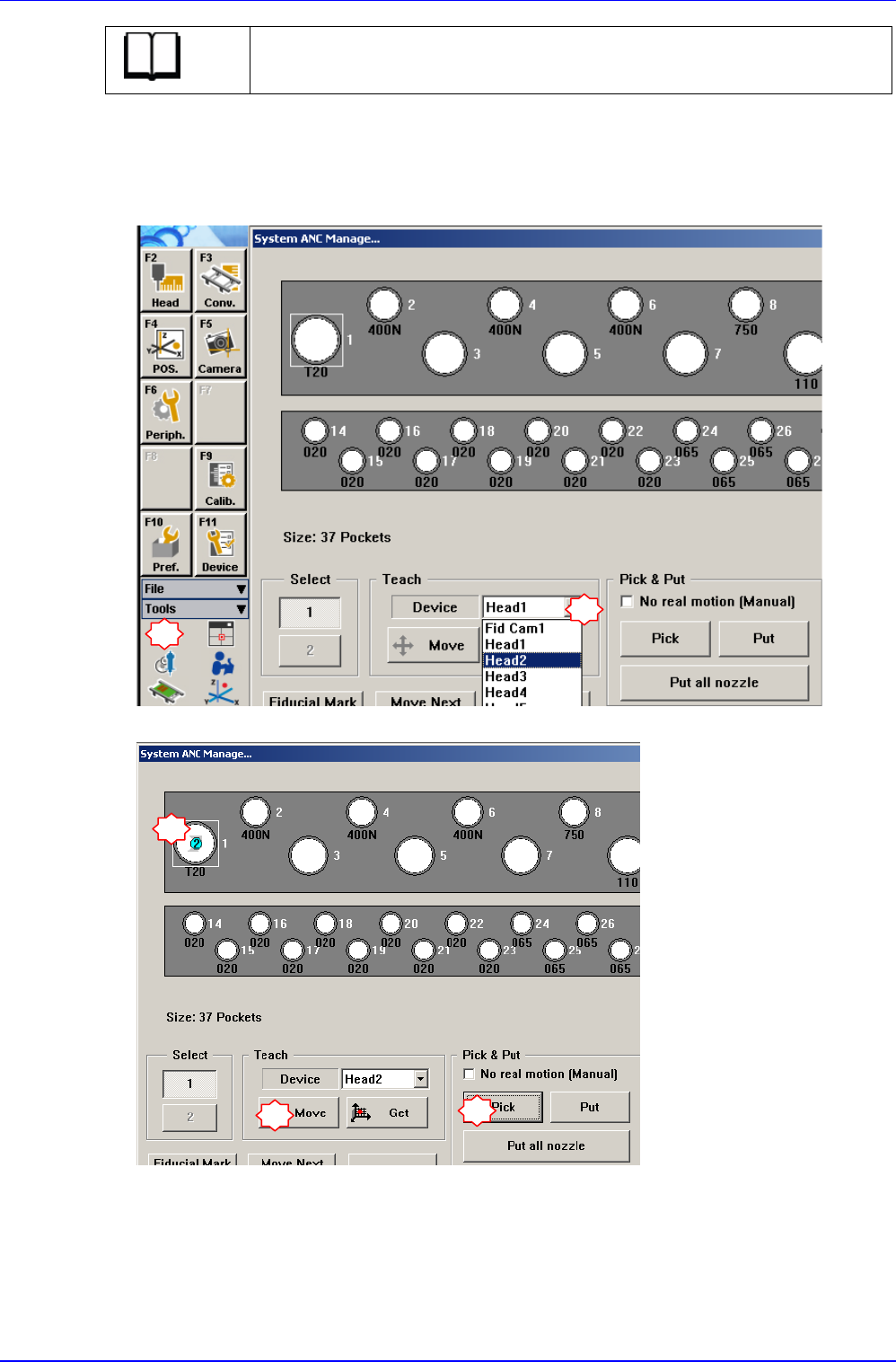 Head 17 “ Parts ” 对话框 中选择任意部件 (1005 ) 后点击 <E dit> 按钮,执行 “ Par t Edi to r” 对话框。 点击 <M ove> 按钮后 , 再点 击 <Prepare Alig ne T est> 按钮 1 2 3 4 5