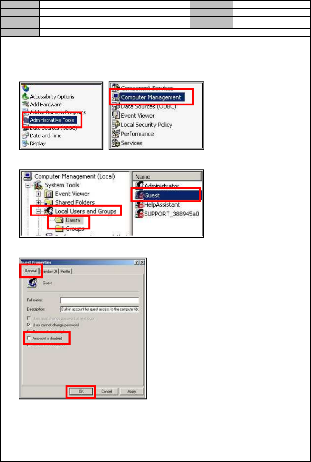 Model DECAN Series Company SAMSUNG TECHWIN Module 3.14 OS V ersion 01 Tit le 设定共享文件夹 Page 3-14-10 Note 5. 点击 < 本地策略 > → < 用户权限指派 > → < 拒 绝从网络访问这台计算机 > 6. 点击 < 本地安全设置 > → <Guest> → < 删除 &g…