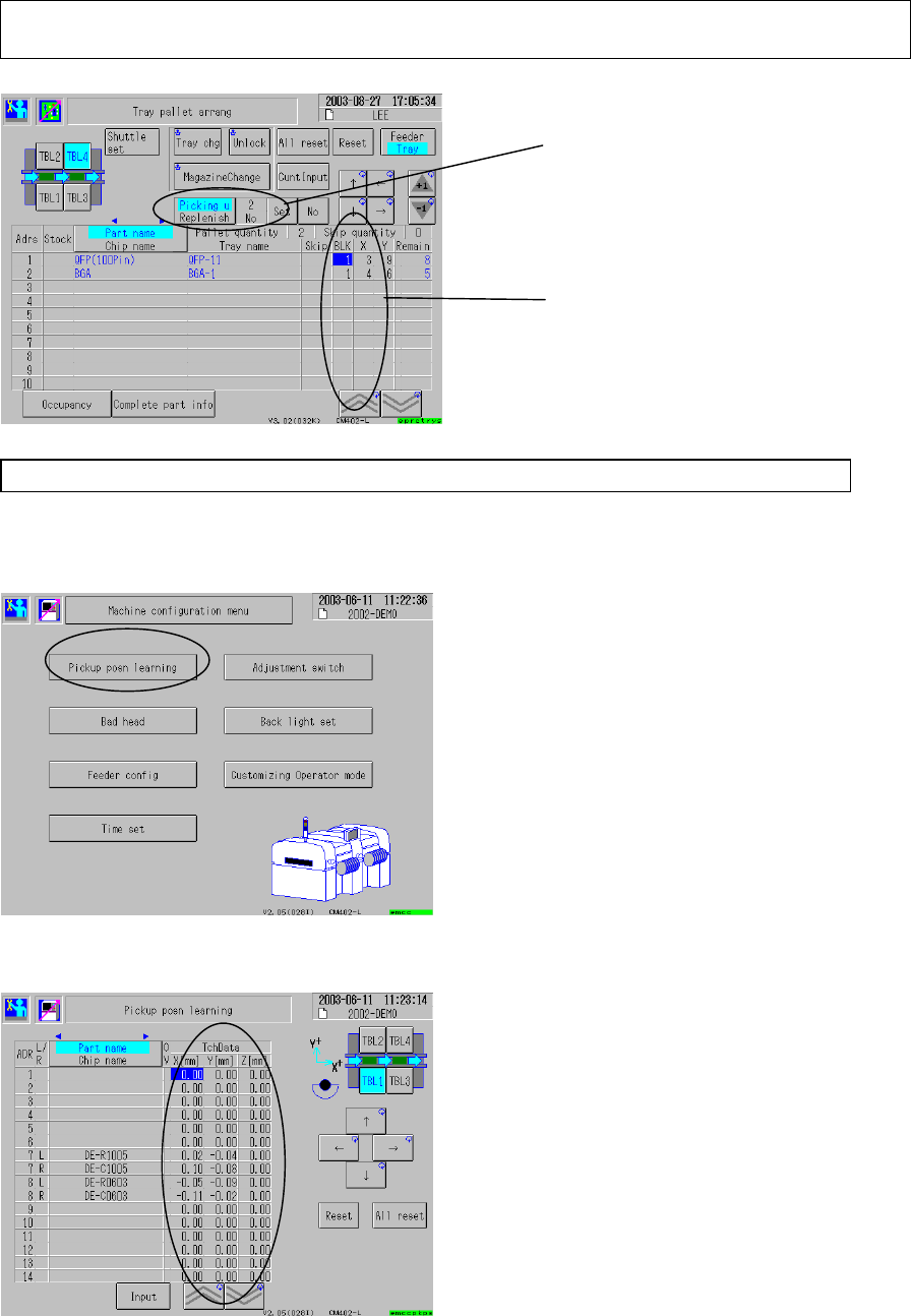 Pickup position learning data has been cleared.; open a desired setting window and set the
