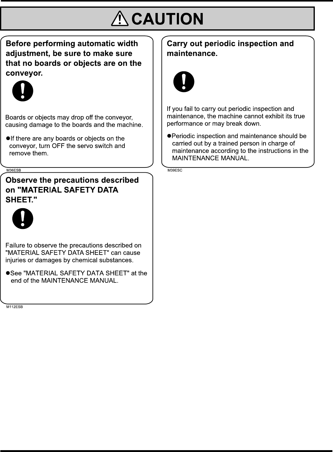 CM602- L Se r vi c e Manual 25 EJM4A-0 06 E Labels p asted on pr oduct for s afety Dang er l abel s The warni ng label s are pasted on thi s machine as foll ows . F ollow the i nstruc tions on each l abel. If it has co…