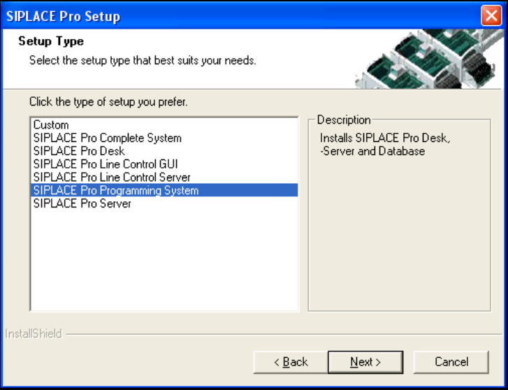 Fig. 7.2 - 3 Installing SIPLACE Pro - Selecting the setup type