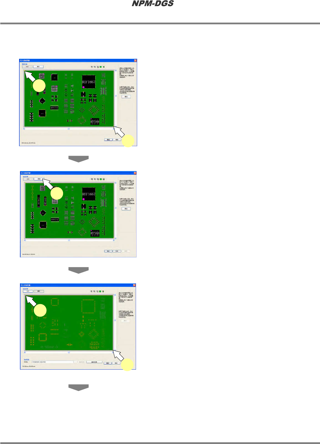 程序手册 5.8 PCB 编辑 EJS9AC-MB-05P-20 Page 5-337 5 点击 [ 读取图像 ] 。 · 将读取图像,并显示 < 读取图像 > 画面。 * < 读取图像 > 画面上的操作,请参照下述章节。 ‘13.2.6 支撑销侧图像的读取 ②图像文件 的补正、③图像文件的 剪切 ’ Project050816S-06C00 5