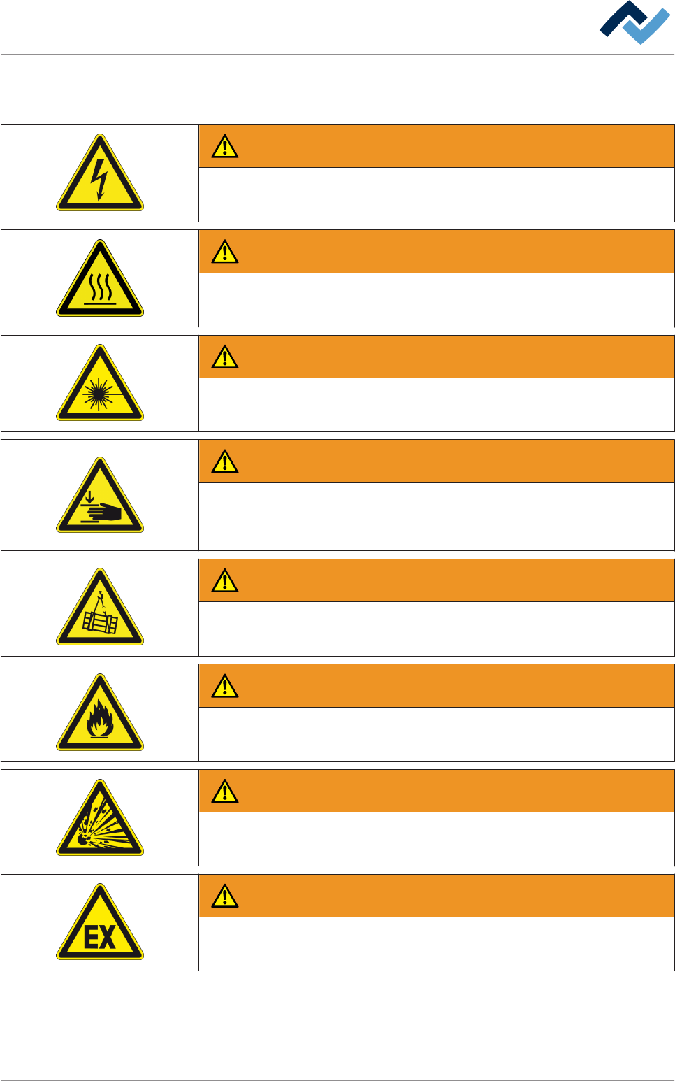 Usiamo i seguenti pittogrammi per le avvertenze di pericolo: