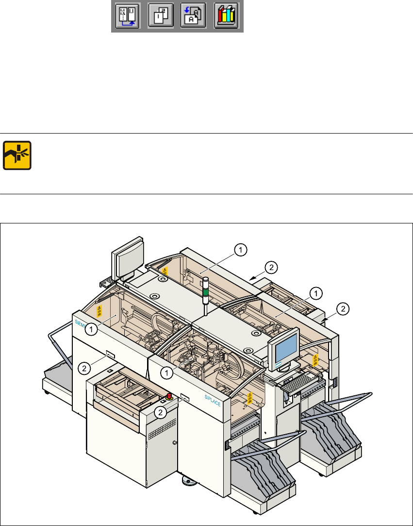 To prevent all risk of injury when closing the protective covers on the machine, all personnel must