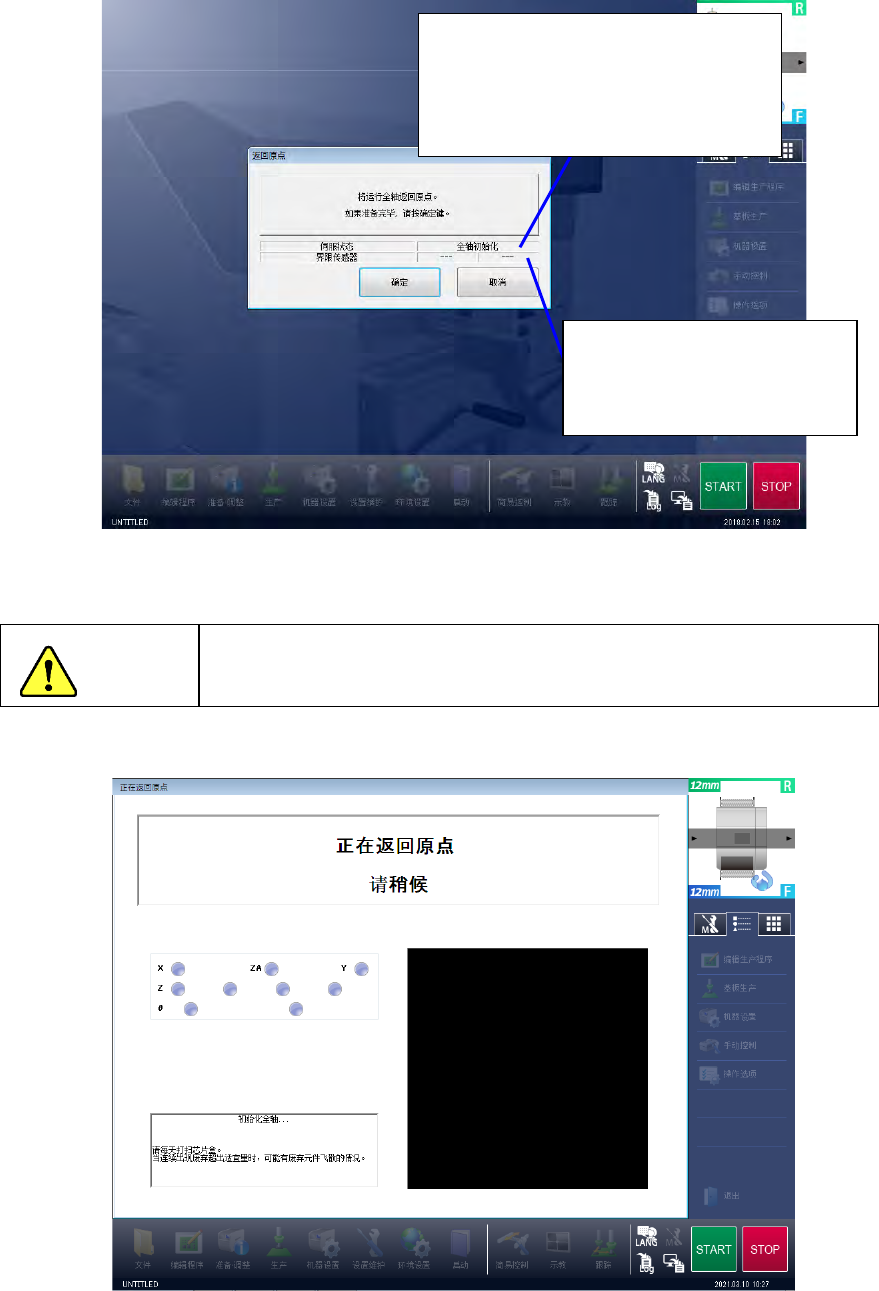(3) 初始设置结束后会显示主画面,在画面上显示返回原点画面。