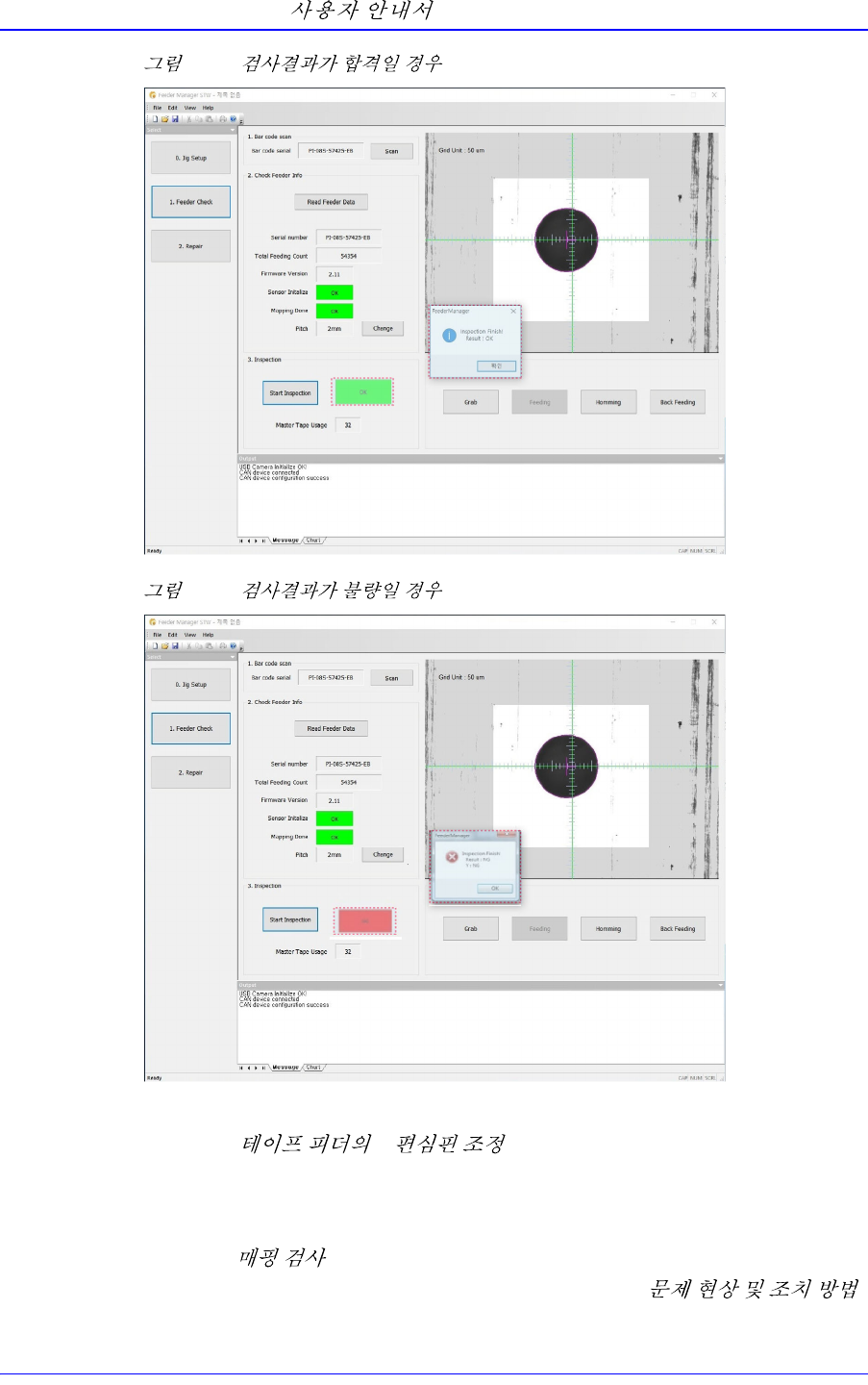 프라켓 부품을 재조립 또는 교체한 경우에는 반드시 피더의 센서를 초기화하고 매
