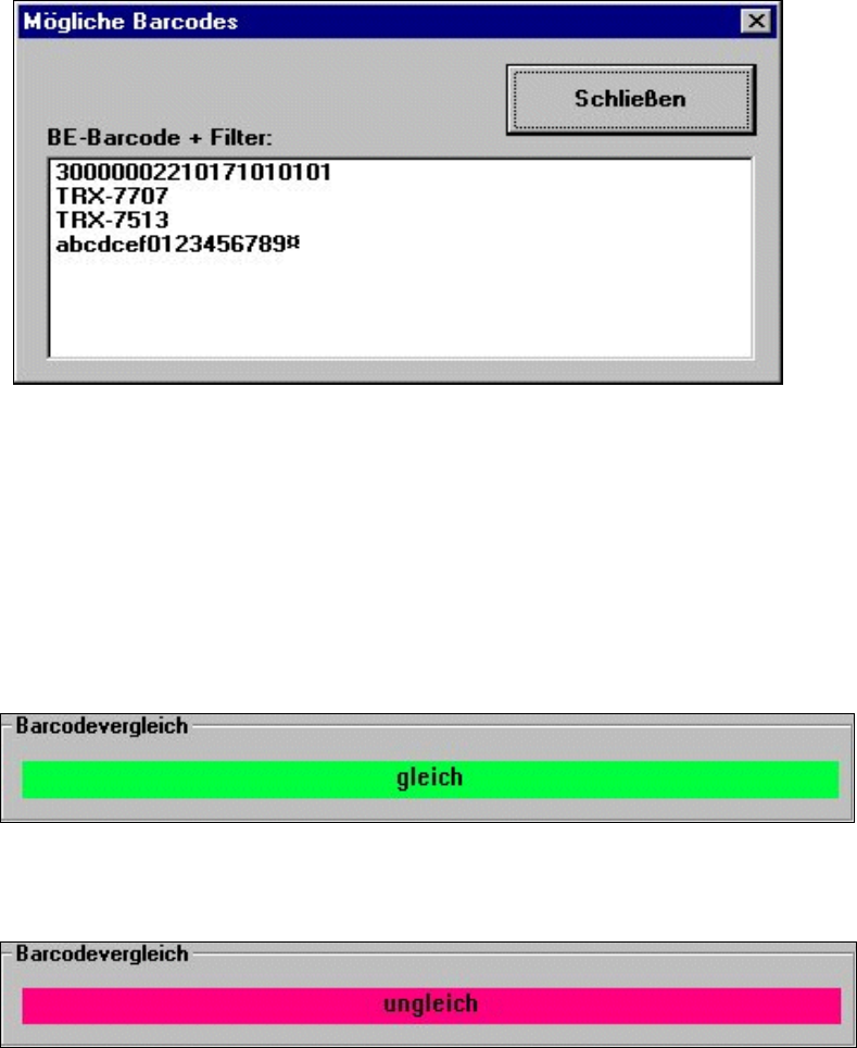 Der mittels Barcodeleser eingelesene Barcode wird mit den möglichen Barcodes verglichen.