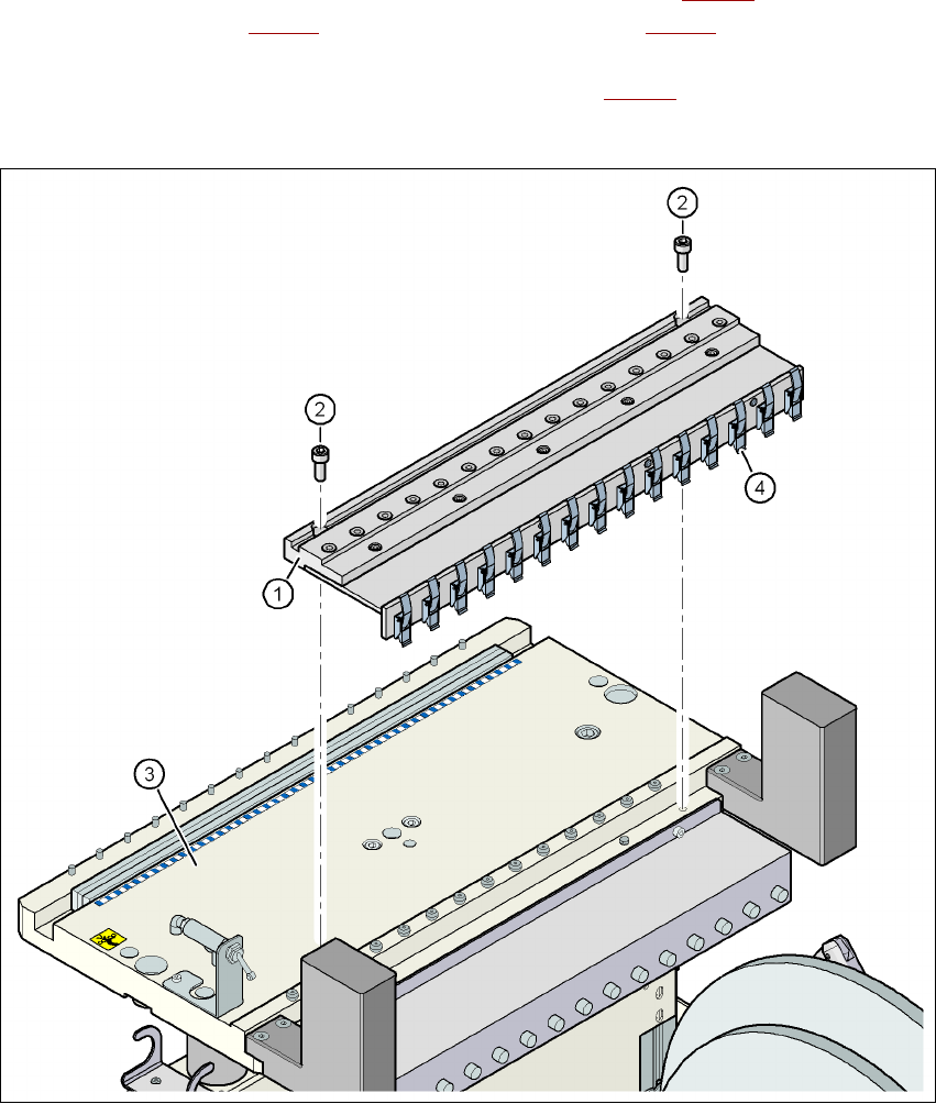 – Na stopu 1: Držák role pásu se zkrácenou vodící kladkou pro 1 podavač (poz. 3 na obr. 3.11 -