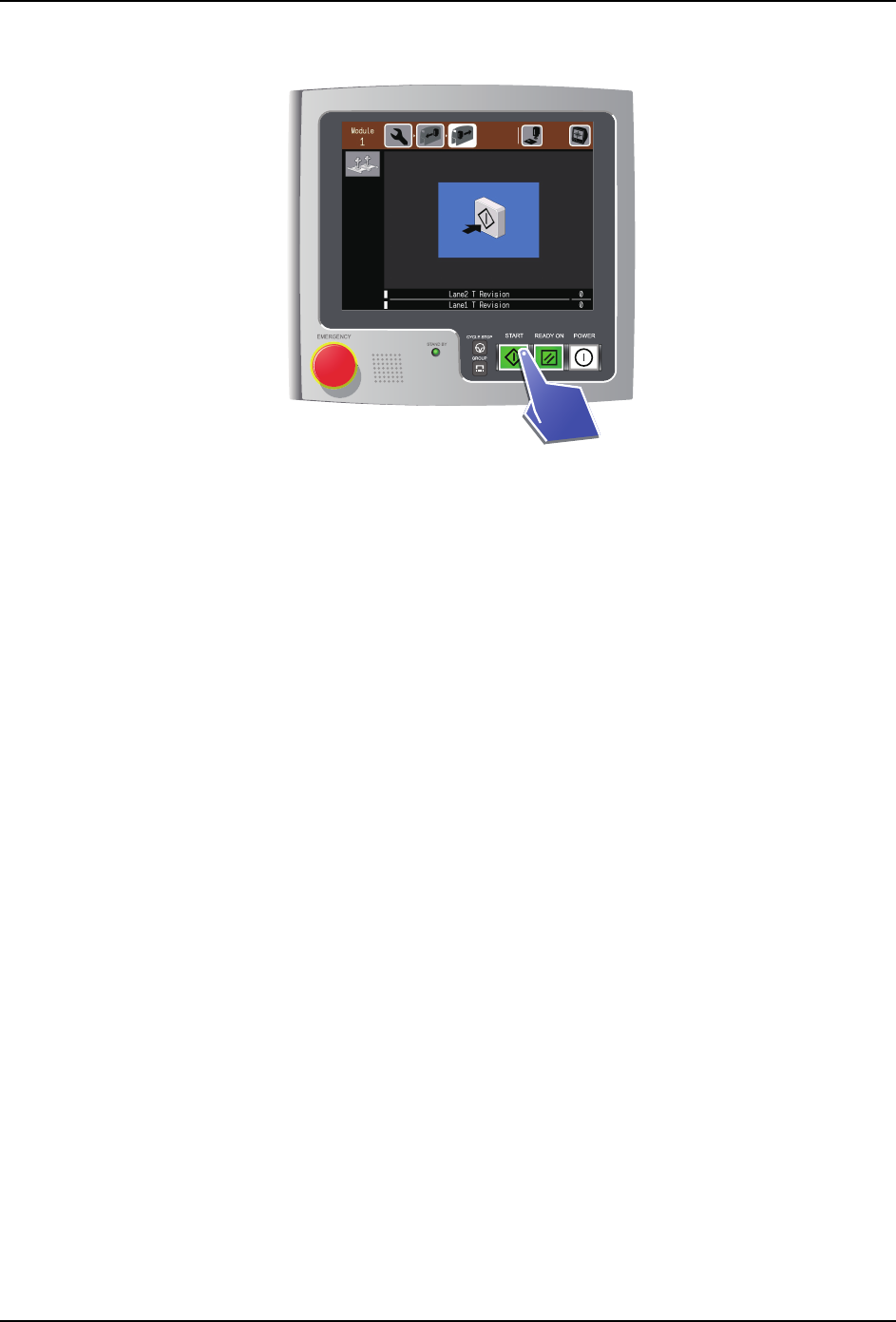 3. 显示工作头退避的等待开始画面。按下 START 按钮,工作头就开始移动。