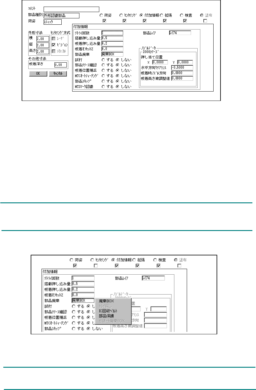 下さい。一度、付加情報項目を変更後に、部品種別、センタリング、部品荷姿の項目を変更す