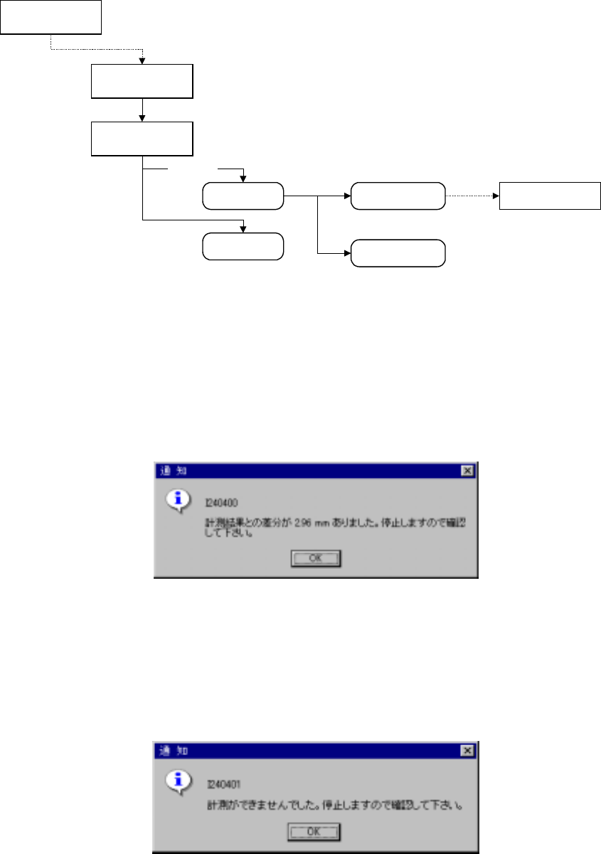 4 - 204 吸着高さ追尾の条件設定で「計測値の取り込み動作 を行う」を設定した場合、 HMSで の計測値を吸着データのZ座標に取り込むかどうか の問い合わせダイアログが 表示され ます。 取り込む場合は「はい」を押して下さい。 吸着高さ追尾の 条件設定で「 カメラで位置確認を する」を設定 した場合、VCSモ ニタ ーに吸着位置を 映し出します ので、以下のダイア ログが表示さ れたら目視で確認し て下 さい。 …