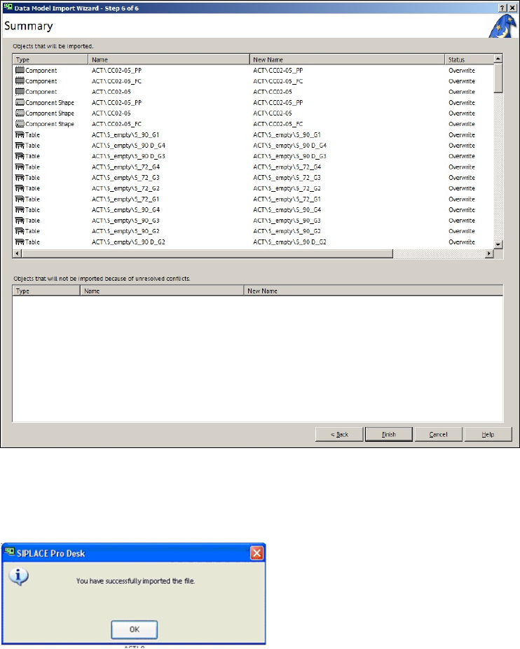 Figure 3-25: Finished import of XML files for tables in SIPLACE Pro