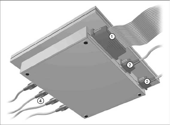 Flachbandkabel aus der Achsansteuerung dem Achsprüfgerät zugeführt.