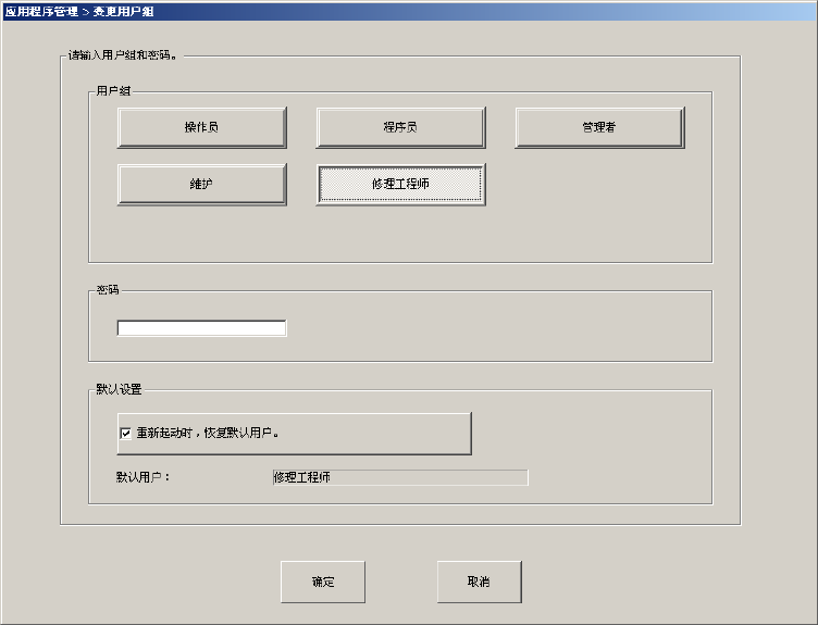 为防止对机器的操作错误引起运行错误,本设备根据作业人员的操作熟练程度,设置了用户