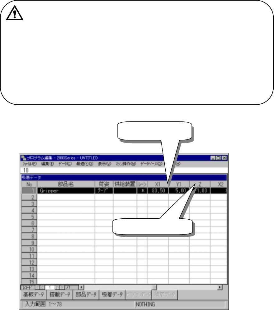 吸着データは、通常のノズルを使用する場合と変わらりません。従ってグリッパーのアーム位