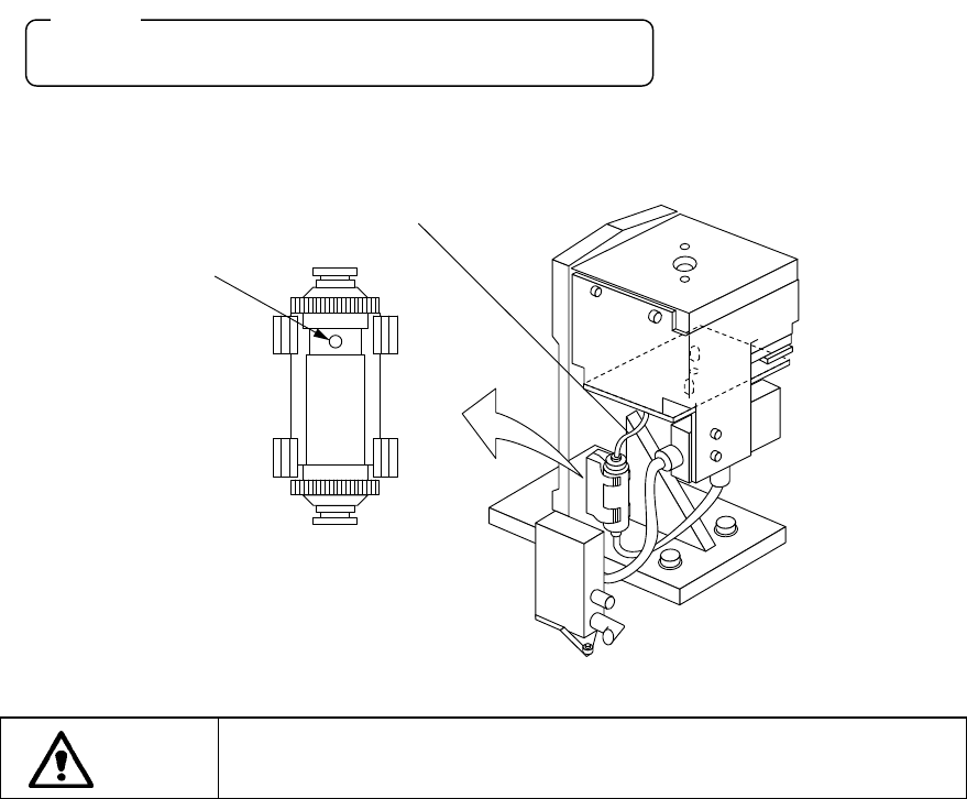 13 - 7 13-2-4. エアフィルタ(ヘッド) エアフィルタ(ヘッド) エアフィルタ(ヘッド) エアフィルタ(ヘッド) 1. Z スライドシャフト①の止めねじ②をゆるめて,ノズルアウタシャフト③を抜きます。 2. フィルタ④の汚れを点検して下さい。 3. 汚れ等があれば,ノズルアウタシャフト③からフィルタ④を交換します。 4. ノズルアウタシャフト③を Z スライドシャフト①に差し込み,止めねじ②でしっかり固 定します。 フィルタ…