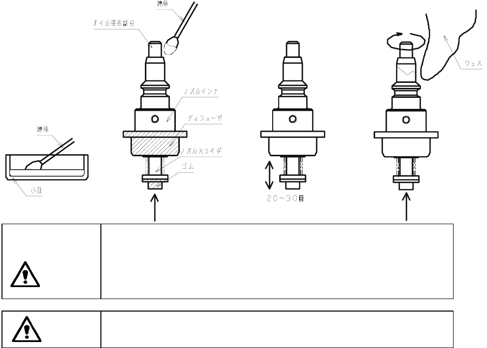 なお、ノズルのディフューザとゴムの部分(下図斜線部)には、オイルが付着しないように注意して