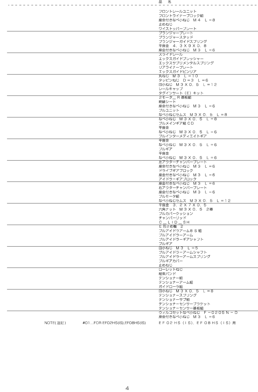 REF.NO NOTE PART NO D E S C R I P T I O N Qty