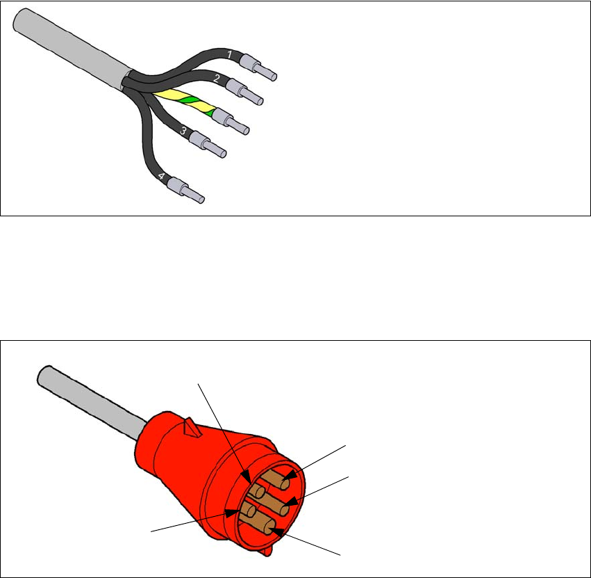 – Кабель 5 x 4 мм² 5 x 25 A со штекером CEKON (от 3 ф. 360 В~ до 3 ф. 480 В~)