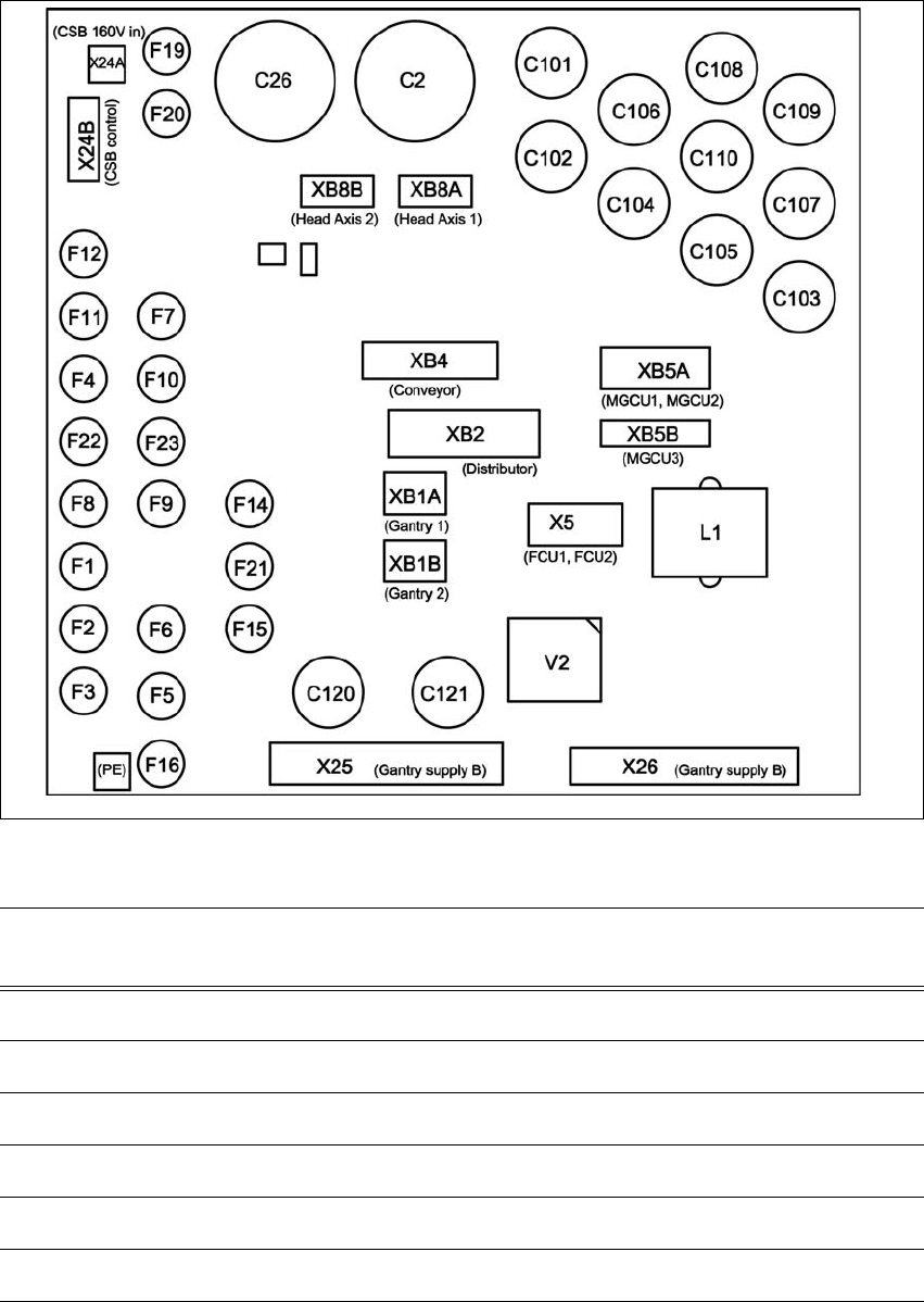 Руководство по эксплуатации SIPLACE SX1/SX2 4 Монтаж и ввод в эксплуатацию Начиная с версии SR.710.0 Издание 12/2016 4.2 Инфраструктура места монтажа 197 F7 Уп р а в л е н и е конвейером 6,3 24 F8 Y датчик - модул ь 1 6,…