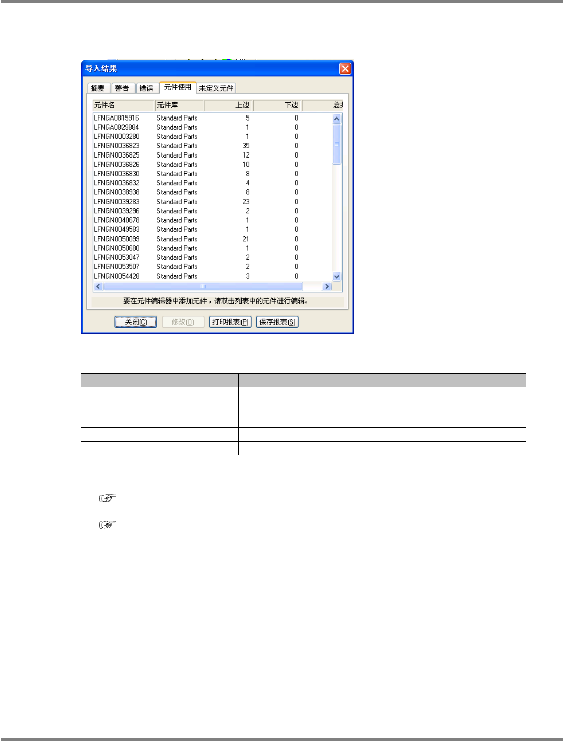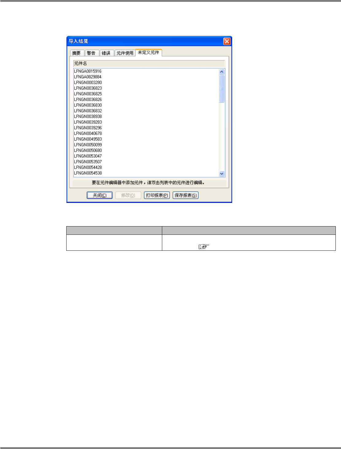 NPM-DGS 程序手册 5.3 CAD/BOM 文件的导入 EJS9AC-MB-05P-25 Page 5-105 ⑤ 未定义元件标签 从以 GenCAD14 宏所导入的元件中,显示 DGS 侧的未定义元件。 显示项目 项目 说明 ‘ 元件名 ’ 显示没有登录在导入目的地 DGS 中的元件。双击,即能够新建 编制元件。 ( ‘6.5 添加新的元件 ’ ) Project050300S-2 3C01