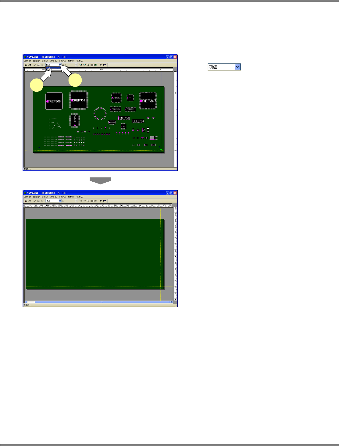 NPM-DGS 程序手册 5.8 PCB 编辑 Page 5-164 EJS9AC-MB-05P-25 区块类型转换 1 点击 PCB 编辑器工具栏的 ( 区块类型转换 ) 。 2 选择其它区块类型。 显示出其它区块类型的图像。 Project050802S-0 3C00 1 2 Project050802S-0 4C00