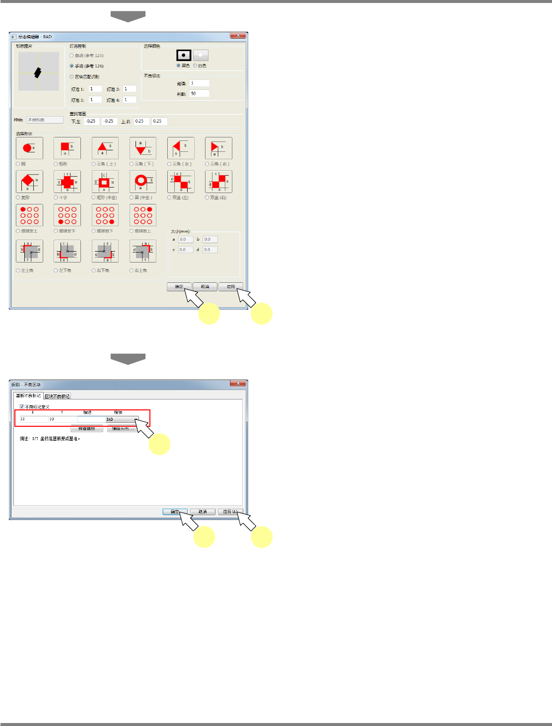 ① 添加新建的基板不良标记