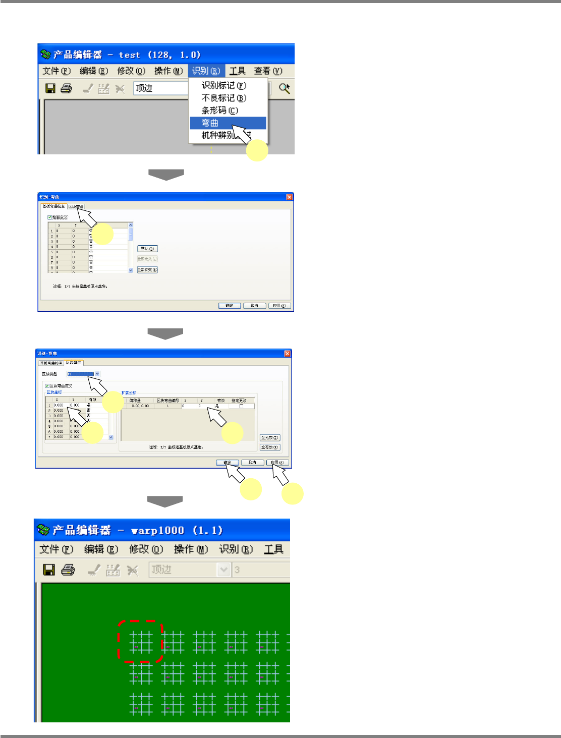 选择、编辑需要变更的区块弯曲计测