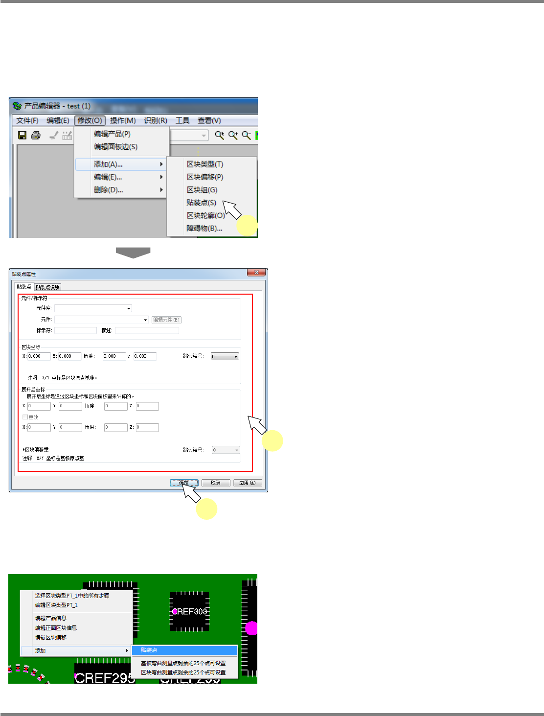 想要在基板上右击后的部位上添加贴装点时,