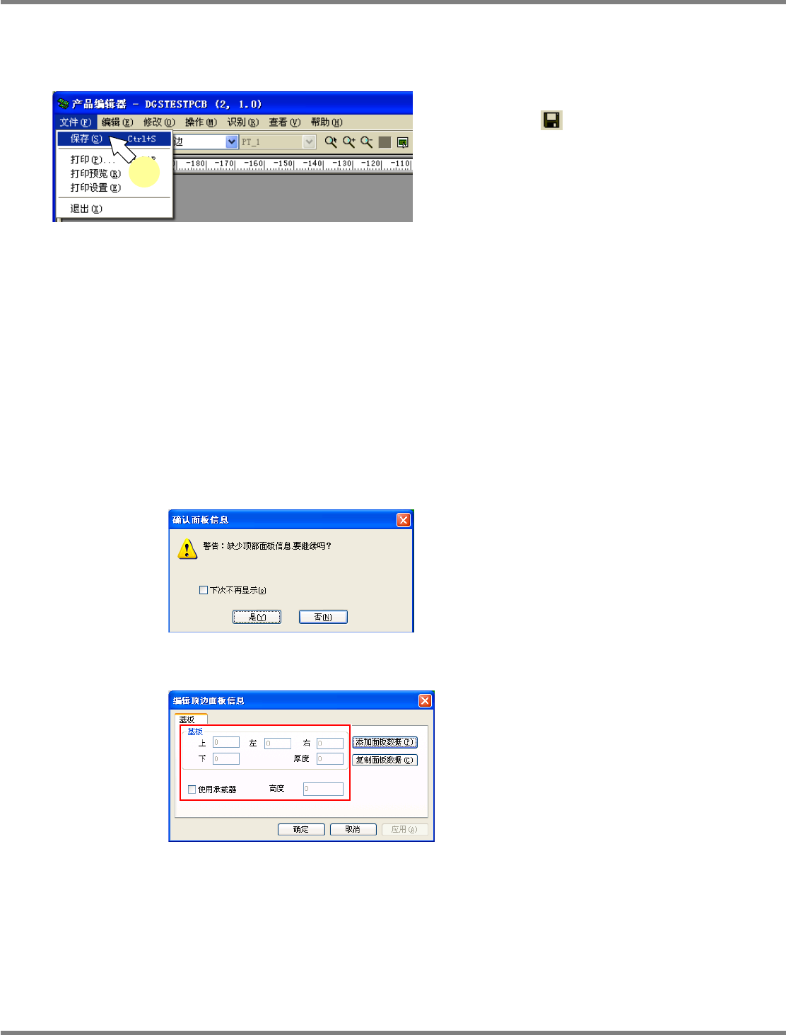 背面不存在基板数据时,将显示警告对话框。