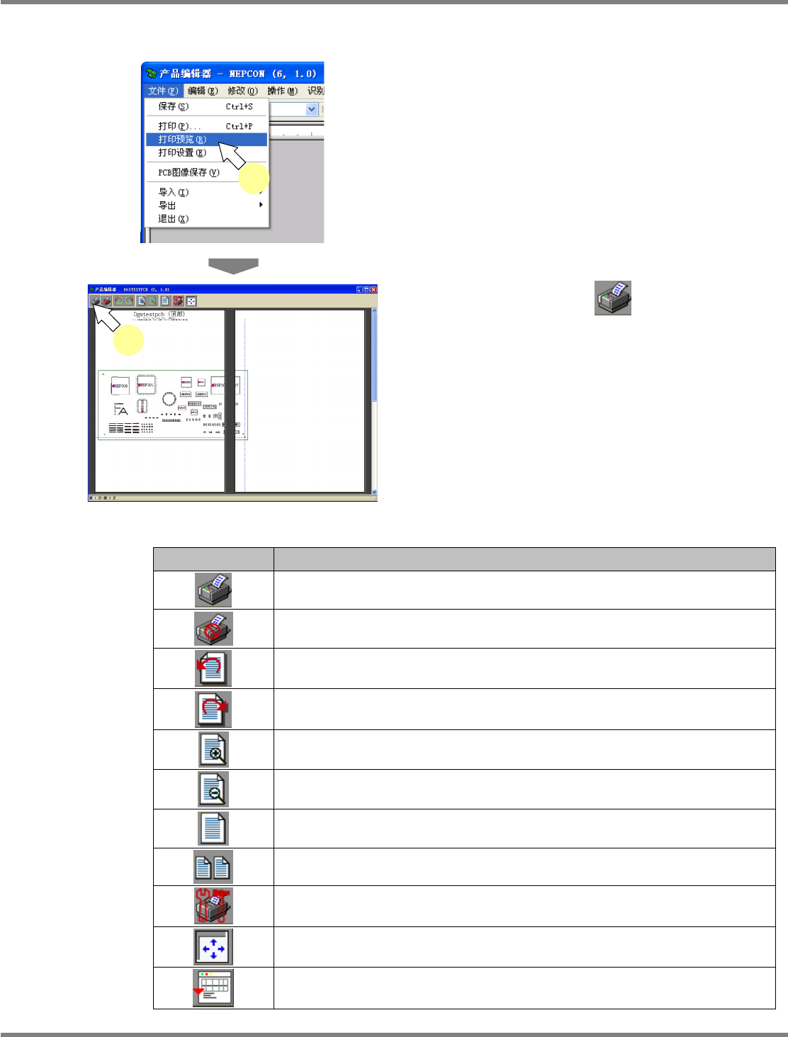 NPM-DGS 程序手册 5.8 PCB 编辑 Page 5-352 EJS9AC-MB-05P-25 PCB 数据的印刷 1 选择菜单栏的 [ 文件 ] [ 打印 ] ,或者工 具栏的 ( 印刷 ) 。 显示出 < 打印 > 画面。 2 进行为印刷所需的设定。 3 点击 [ 确定 ] 。 所选择的打印机将开始印刷。 印刷设定项目 项目 说明 ‘ 实际大小 ’ 使图像的倍率为 100% 。 ‘ 适应到单页…