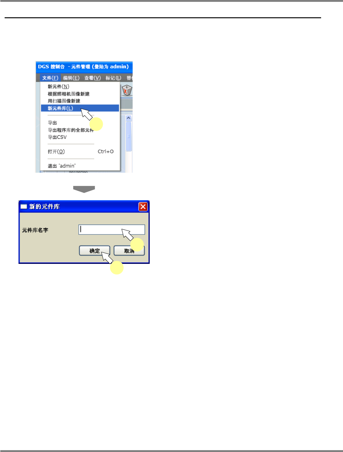 NPM-DGS 程序手册 6.2 添加新的元件库 Page 6-16 EJS9AC-MB-06P-24 6.2 添加新的元件库 通过元件库可进行元件数据的分类和 管理。 定义新的元件库 3 选择菜单栏的 [ 文件 ] [ 新元件库 ] 。 将会显示 < 新的元件库 > 。 4 输入编制的元件库名字。 不能使用下述文字。 % ” 空格 全角文字 以 PT200 规则为基准。 5 点击 [ 确定 ] 。 …