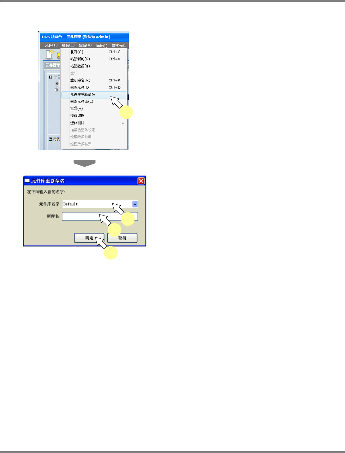 所选择的元件库名将被更改为新的元件库名。
