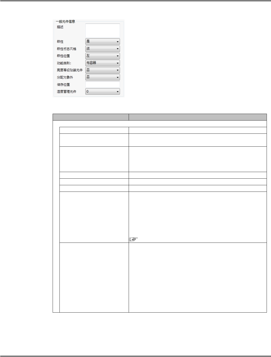 表示元件是否带有极性的标志。有极性时在元件图片上显示极性
