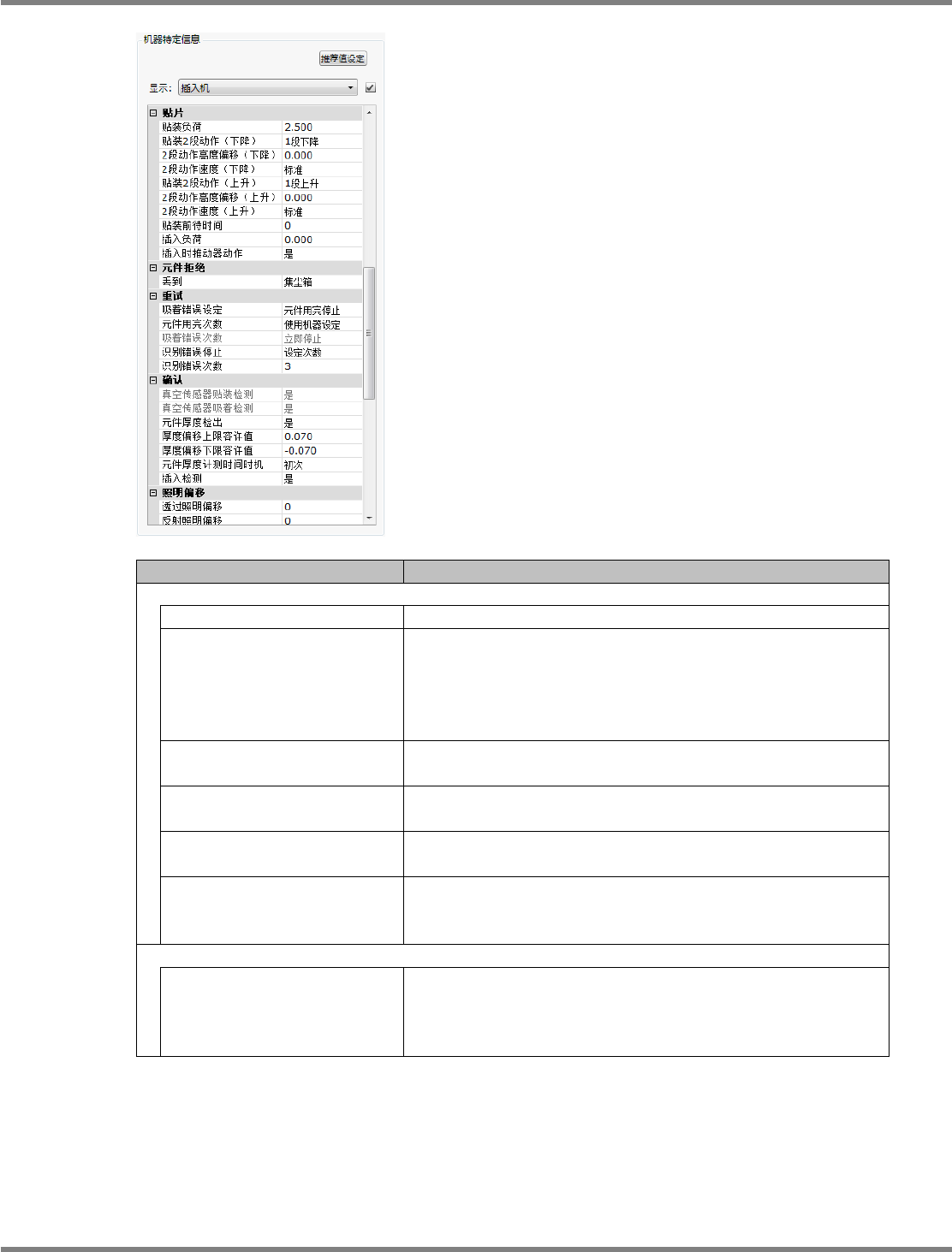 输入贴装头下降为止的标准负荷,并设定在之后压入所需的插入