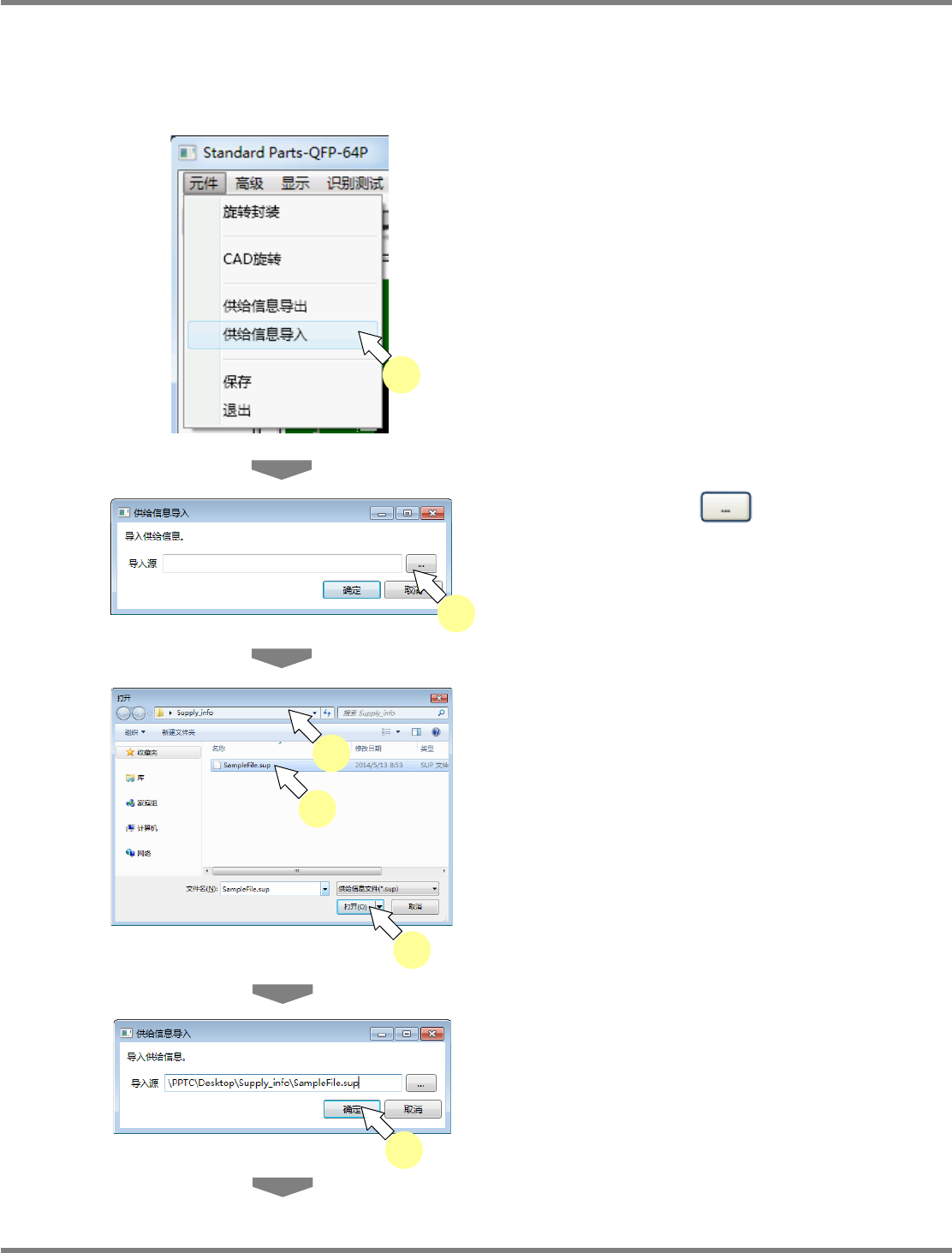 在供给信息导入下,根据每个贴装条件改变供料器种类,然后读取想要使用元件的供给信息文件。