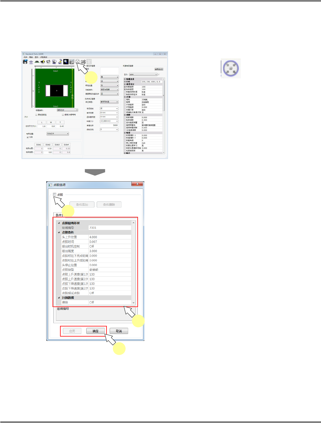 对需要进行点胶的元件设定有必要的点胶选项。