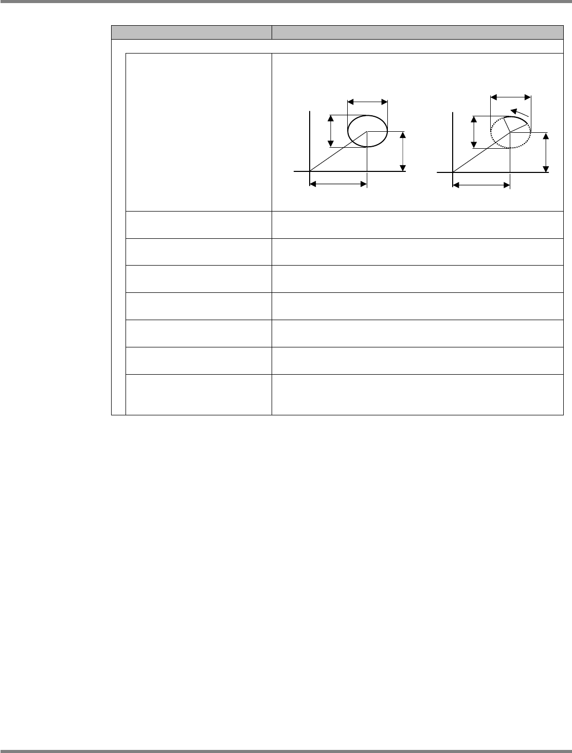 NPM-DGS 程序手册 6.5 添加新的元件 EJS9AC-MB-06P-24 Page 6-141 ■ 圆柱型、圆弧型描绘类型 项目 说明 ‘ 详细 ’ ‘ 描绘类型 ’ 选择描绘类型 。 ‘a’ 设定所选择描绘类型的尺寸 (a) 。 0.01mm ~ ( 元件尺寸 Y 的 2 倍 ) mm ‘b’ 设定所选择描绘类型的尺寸 (b 。 0.01mm ~ ( 元件尺寸 X 的 2 倍 ) mm ‘X’ 设定从元件中心起到描绘类型中…