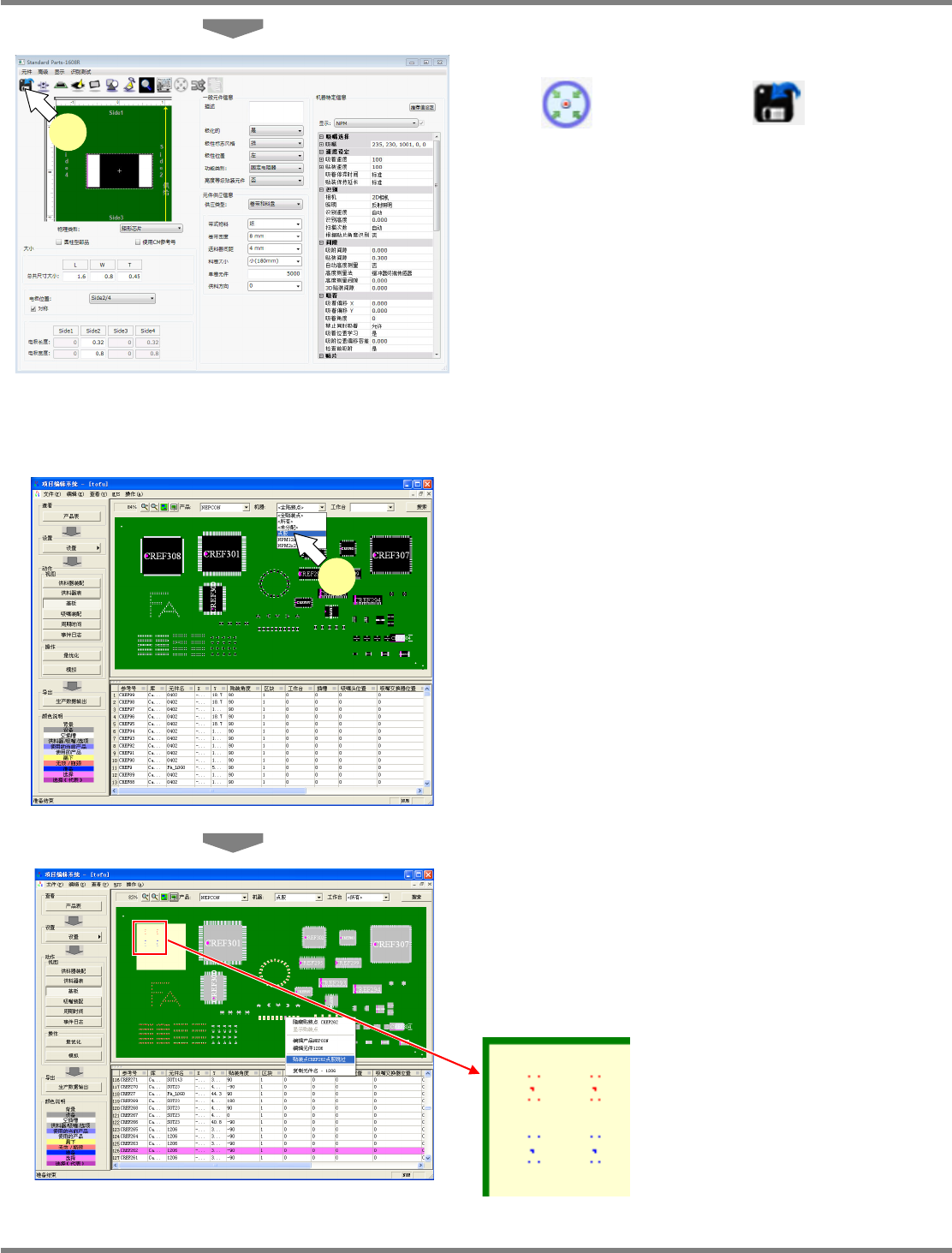 显示从根据实装点设定完毕的生产数据至添加点胶数据的操作步骤。