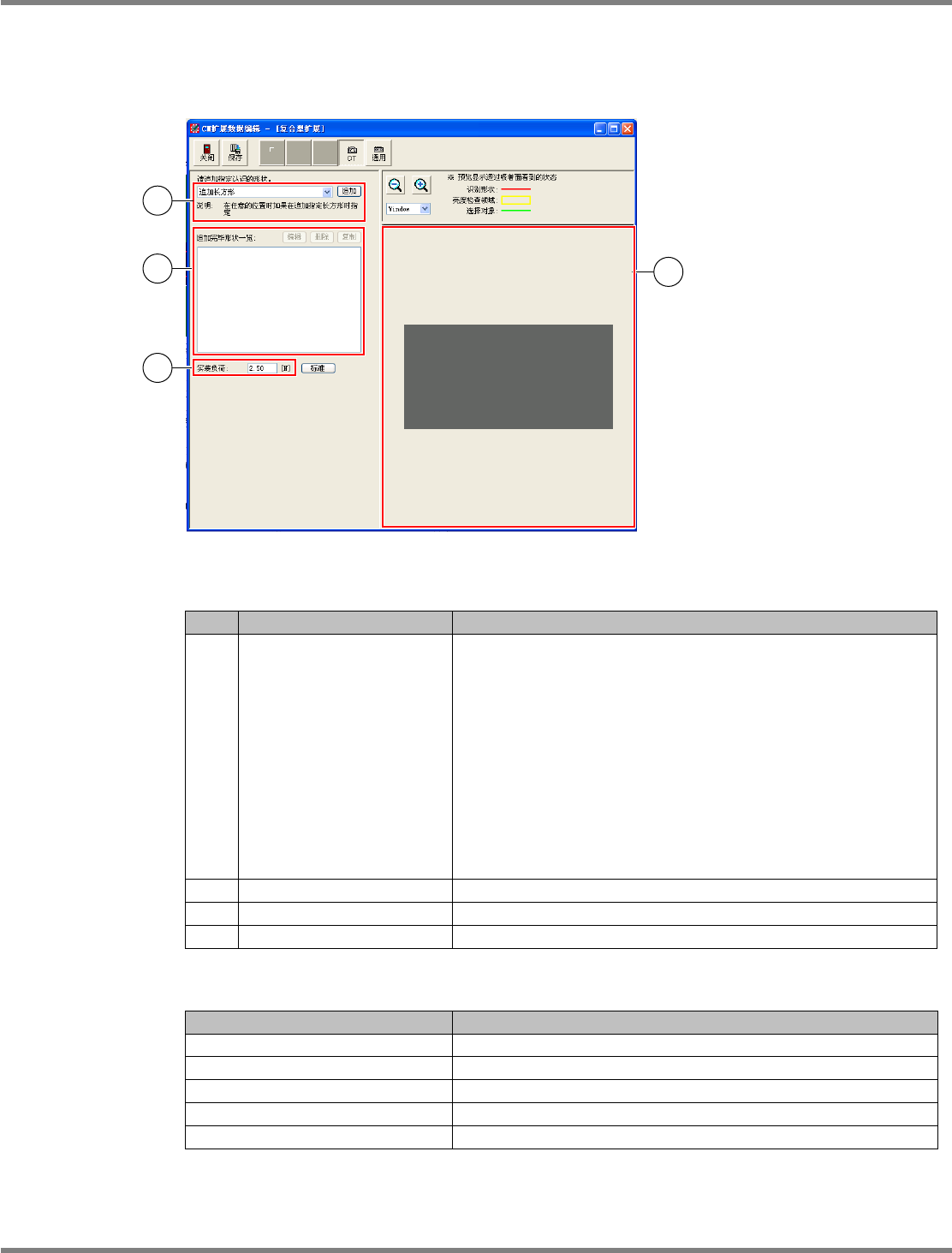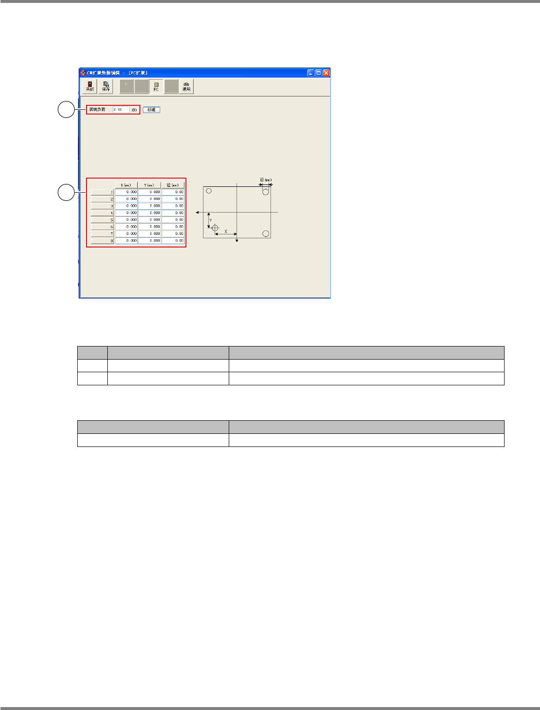 NPM-DGS 程序手册 6.5 添加新的元件 EJS9AC-MB-06P-24 Page 6-153 复合型扩展 当将元件识别参考序号设定了下述值 时,将显示复合型元件的 CM 扩展数据编辑画面。 元件识别参考序号 : 241 ~ 247 设定项目 No. 名称 说明 1 形状识别指定栏 选择追加形状识别的形状、电极、亮 度确认。 • 追加长方形 • 追加电极 • 追加引线组 • 追加生产线 • 追加角 • 追加圆 • 追加球…