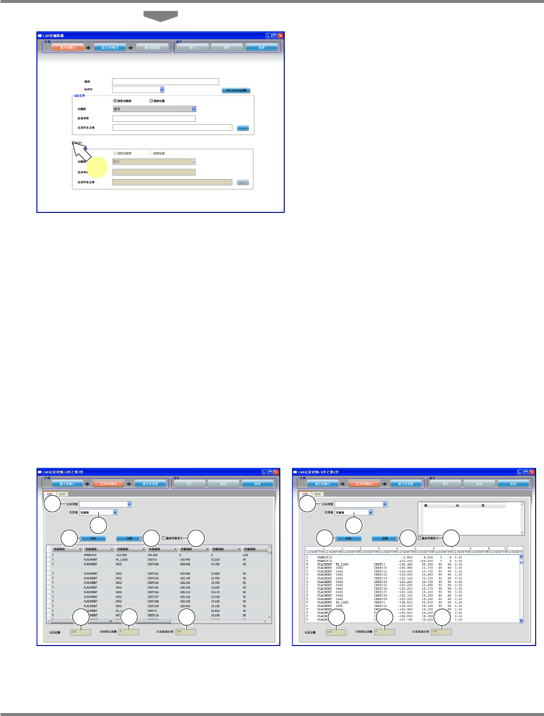 NPM-DGS 程序手册 5.2 CAD 宏的定义 Page 5-36 EJS9AC-MB-05P-25 记录类型和字段定义的关系 为了定义记录,首先定义 ‘ID 方法 ’ 、以及相关的字段后,并且需要时进行转 换。将 CAD 文件里包含的全部 种类的记录以列表形式显示。 带有 ‘ ’ 的记录类型表示在宏内已被识别。 记录类型 说明 字段 必须设定 [ 偏移 ] 表示基板上的多拼板区块 ( 第 2 区块以后 ) 的位置以及 …
