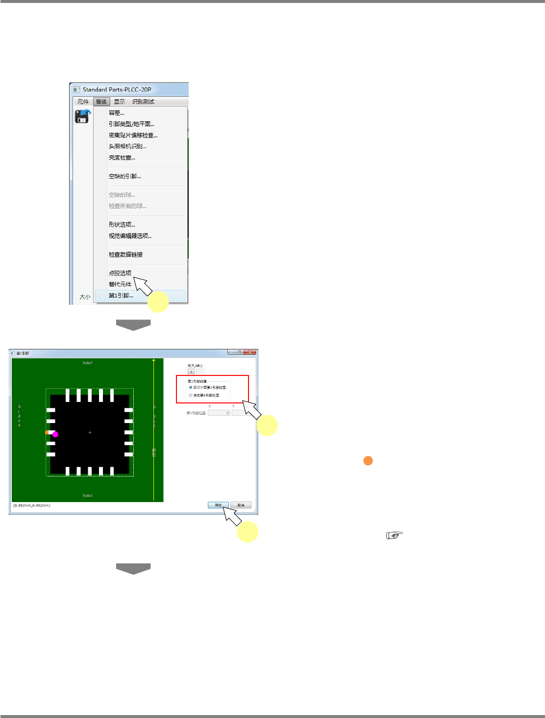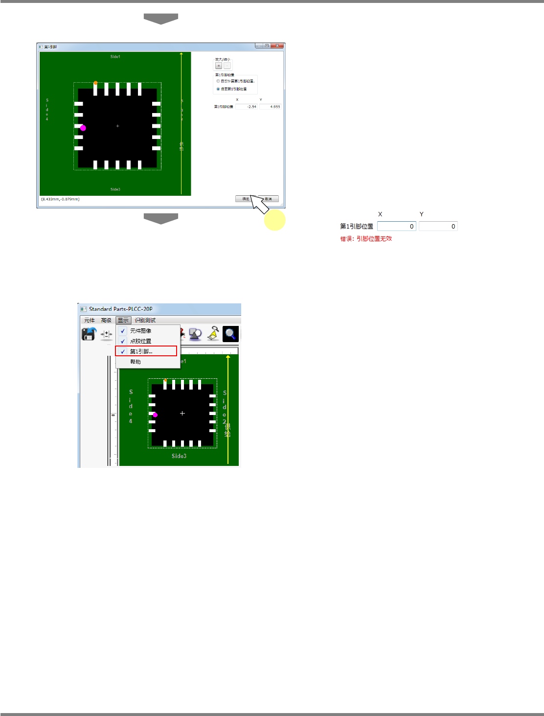 NPM-DGS 程序手册 6.5 添加新的元件 EJS9AC-MB-06P-24 Page 6-169 4 指定了第 1 引脚位置时, 在元件示意图 上双击引脚。 第 1 引脚可设定进引线组、球组、插 入引线组 内。 除此以外的形状选项不可设定。 将在第 1 引脚位上上设定所选择的引 脚位置坐 标。 在无法设定第 1 引脚的坐标上,将显示 " 错误 : 引脚位置无效 " 的信息。 5 点击 [ 确定 ] …