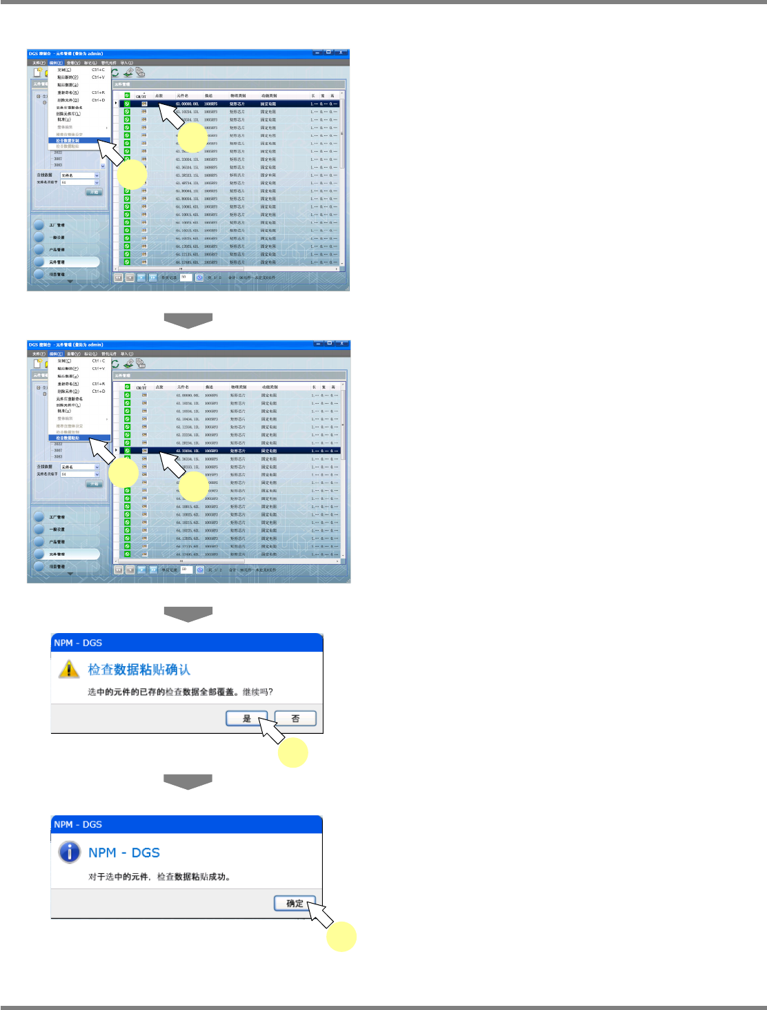 NPM-DGS 程序手册 6.7 现有元件的编辑 EJS9AC-MB-06P-24 Page 6-175 6.7 现有元件的编辑 元件编辑方法 1 在元件一览表中选择要编辑的元件。 2 选择菜单栏的 [ 文件 ] [ 打开 ] ,或者点 击工具栏的 ( 打开 ) , 或者在所选 元件上弹出右击菜单,选择 [ 打开 ] 。 显示出元件编辑器画面。 3 修改编辑部分。 元件编辑的详细内容 : ‘6.5.3 编辑元件 ’ …