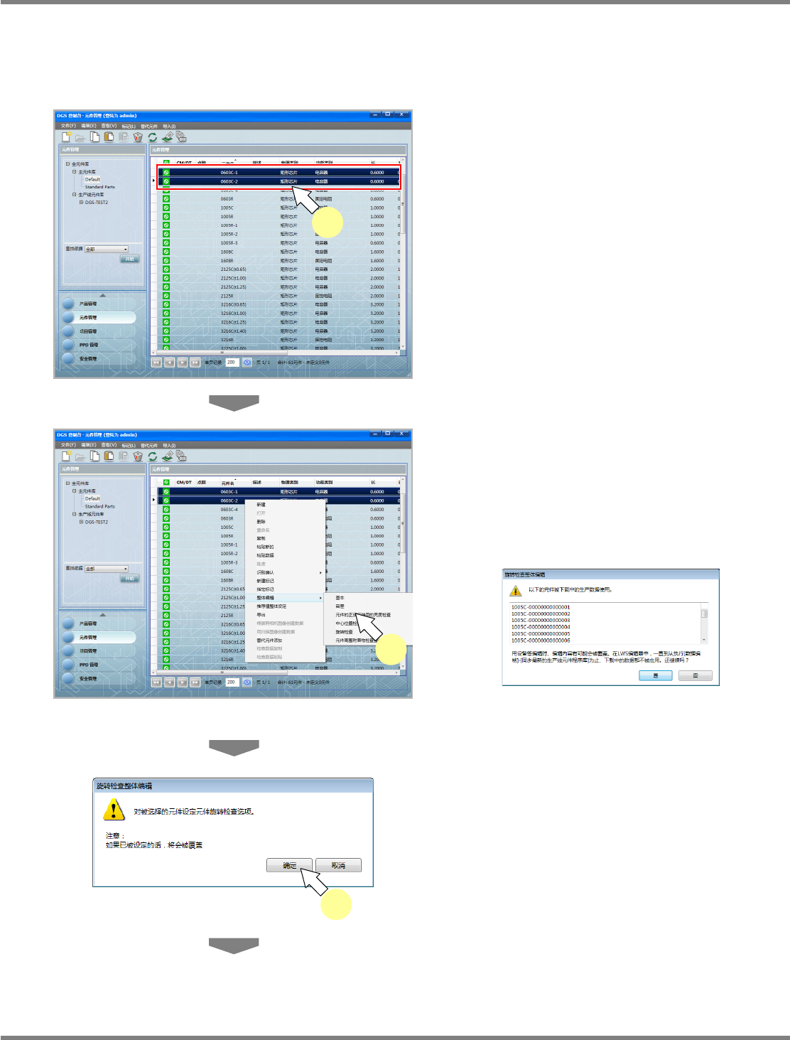 NPM-DGS 程序手册 6.7 现有元件的编辑 Page 6-194 EJS9AC-MB-06P-24 4 输入值。 5 点击 [ 确定 ] 。 显示出确认画面。 如果在生产线元件库下选择了下载中 元件,则 会显示警告信息。 6 点击 [ 确定 ] 。 Parts060800S-5 2C01 6 Parts060800S-5 1C01 Parts060800S-5 0C00 5 4