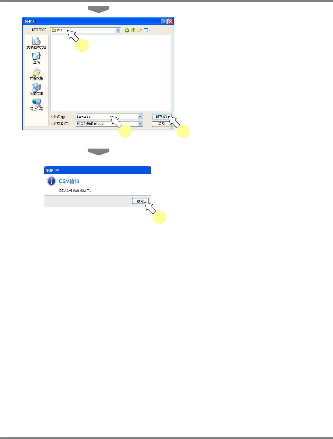 NPM-DGS 程序手册 6.10 导出 CSV EJS9AC-MB-06P-24 Page 6-227 3 指定保存 CSV 文件的目录。 4 输入 CSV 文件名。 5 点击 [ 保存 ] 。 将结束 CSV 文件的输出。 6 点击 [ 确定 ] 。 Parts061000S-0 6C00 6 Parts061000S-0 4C01 4 5 3