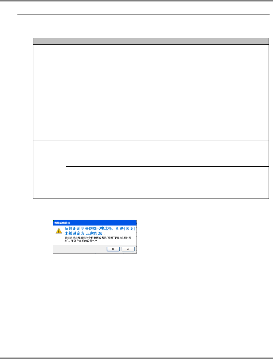 在元件编辑器下,当以不符合照明模式的设定保存时,将显示警告信息。当显示警告信息时,虽然
